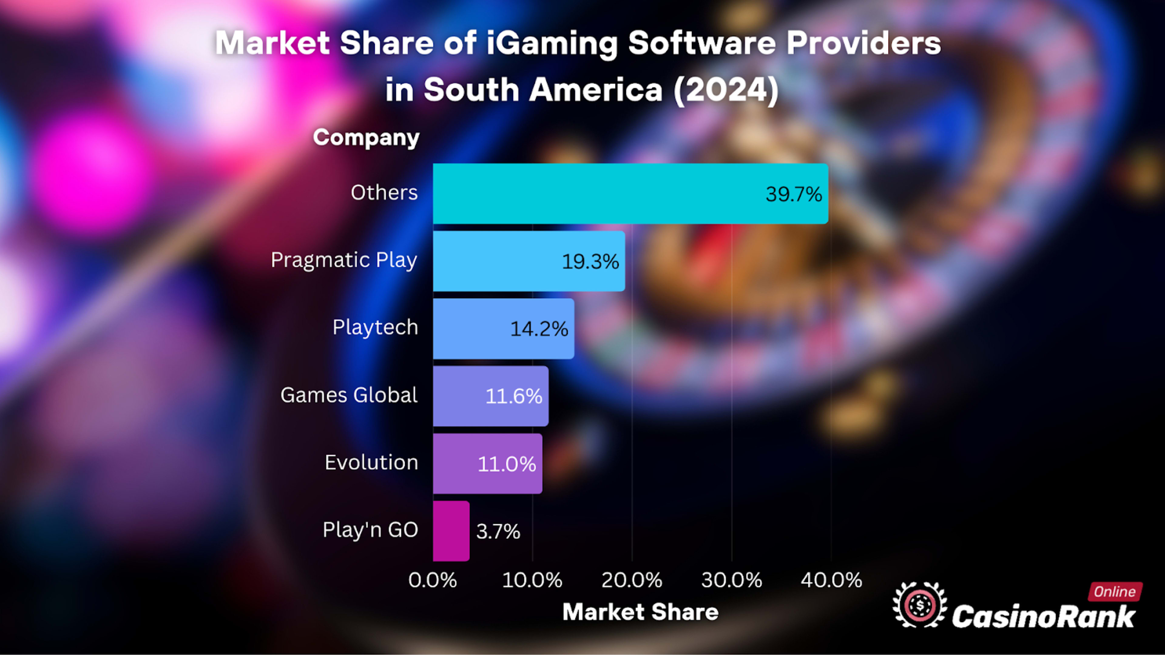 In South America, the iGaming market is characterized by a diverse range of suppliers competing for market share. The distribution of market share is as follows: