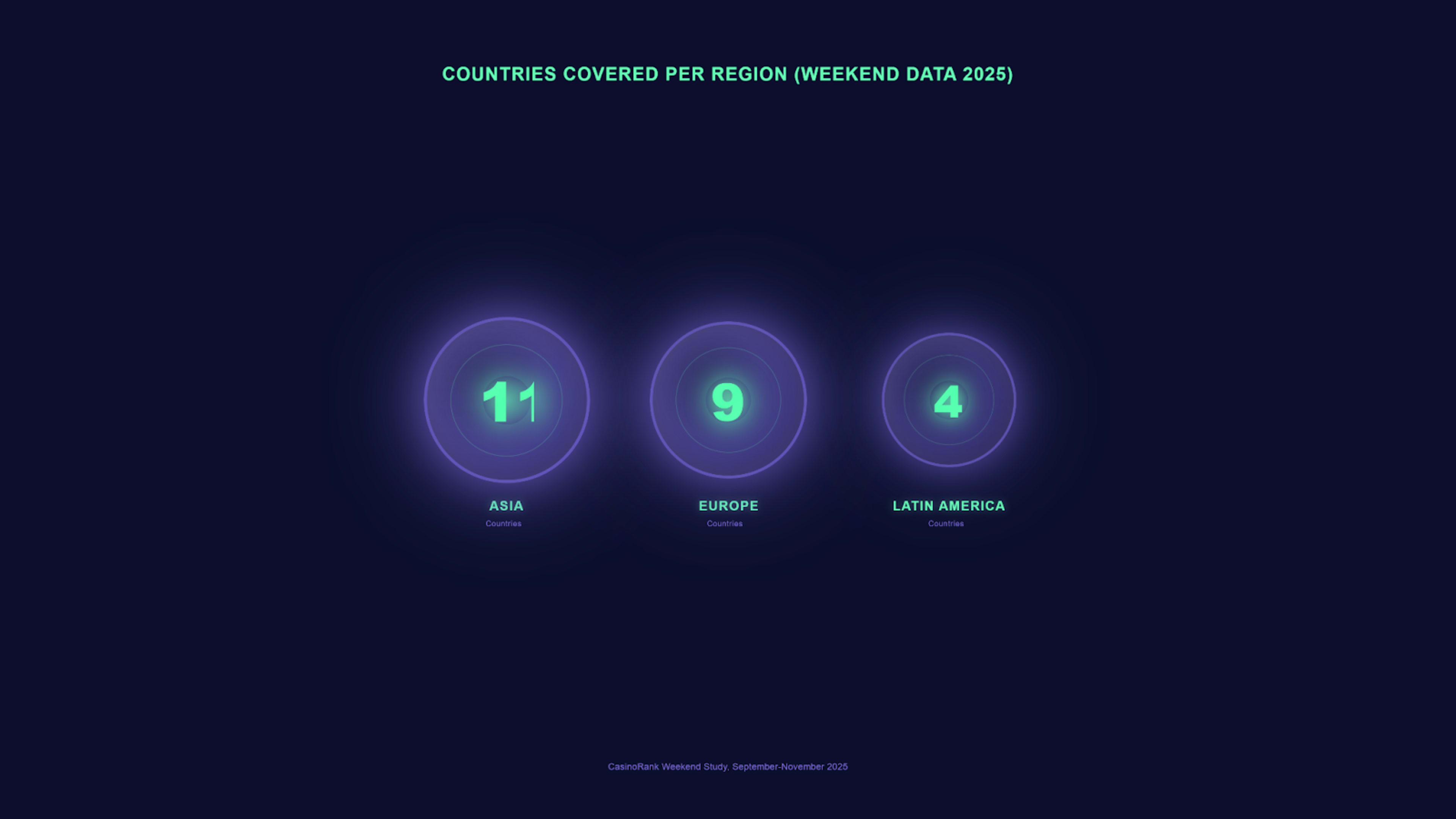 This study is based on proprietary iGaming Tracker data collected between September and November 2025, covering 24 markets across Asia, Europe, and Latin America. The dataset includes ranking, provider, and country coverage data for over 45,000 slot entries, analyzed to identify cross-regional overlap, engagement duration, and CTR trends specific to weekend windows.